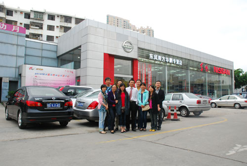 ??? 随后 ,,,,,考察团的成员们旅行了春风日产深圳南方华鹏专营店 ,,,,,该专营店建设于2000年 ,,,,,是春风日产乘用车公司天下第一家4S专营店 ,,,,,被誉为“春风日产的创业先锋”。。。。。。。。通过此举 ,,,,,我们与兄弟企业建设了友好联系 ,,,,,增进了相互间的相识。。。。。。。。