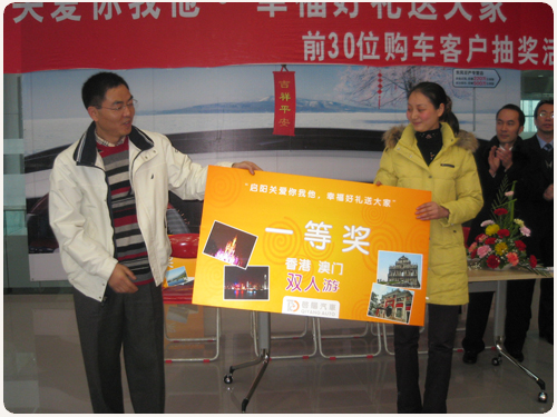 ????上周六,,,,,,,在春风日产韦德网站官方入口专营店展厅举行了“韦德网站官方入口关爱你我他,,,,,,,幸福好礼送各人”的抽奖运动。。。。。。加入此次运动的有春风日产韦德网站官方入口专营店陈斌总司理、春风日产西南大区督导李恺先生、30余名车主、眷属及成都会公证处的公证职员。。。。。。由车主代表抽出了本次运动的四等奖,,,,,,,陈总抽出了运动一等奖“港澳双人游”!事后客户都赞扬春风日产韦德网站官方入口专营店举行的此次运动果真、公正、公正,,,,,,,并且互动性强、加入性高。。。。。。本次运动进一步加深了客户与春风日产韦德网站官方入口专营店的优异关系!