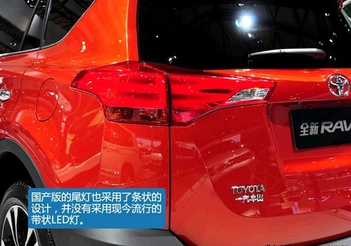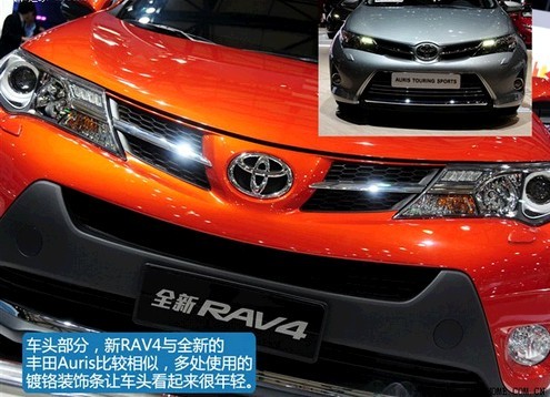 ??? 在今年的上海车展上,,,,,丰田汽车可算是大手笔,,,,,广汽丰田展出了全新国产雅力士;;;;;;;;一汽丰田展出了国产全新的威驰以及我所写的这款国产全新一代RAV4。。。。。全新一代的RAV4已经2012年11月的洛杉矶车展上展出了,,,,,而在2013年4月份的上海车展上我们就见到了这款车的国产版,,,,,可见新车早已经在海内举行了研发和路试。。。。。不过很惋惜的是,,,,,在车展上的这款车的内饰部分不可举行照相,,,,,我们只能先来看看国产新RAV4在外观方面有什么亮点。。。。。
